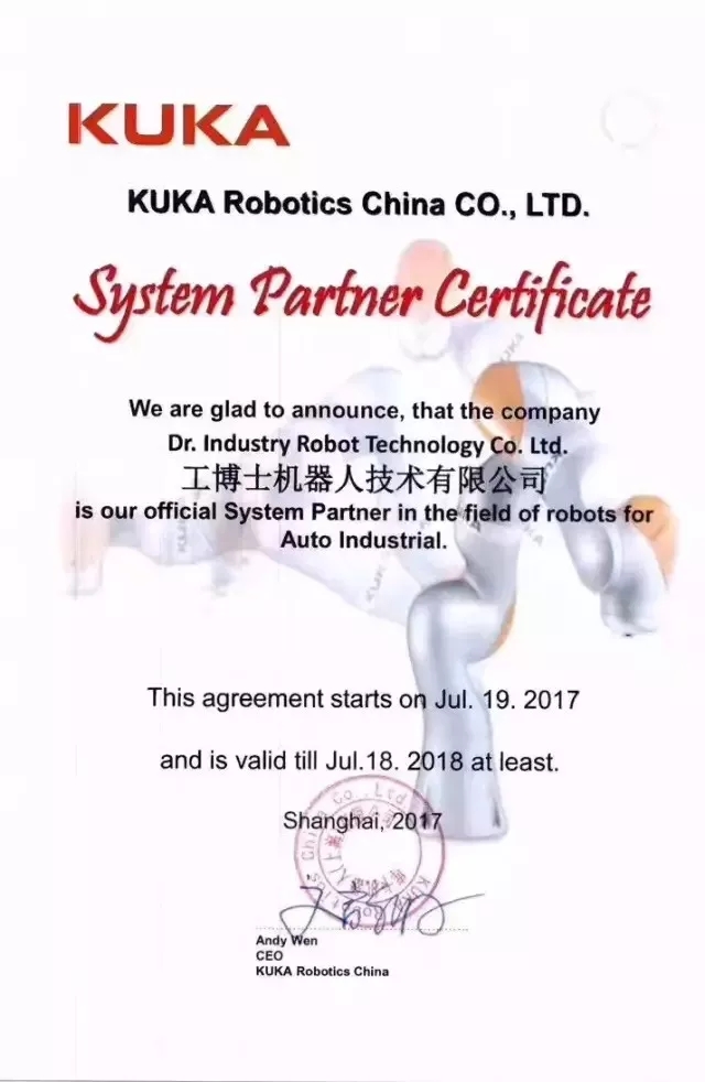 工博士機器人技術有限公司與庫卡機器人就雙方在機器人焊接工作站及機器人系統(tǒng)集成方面達成緊密合作協(xié)議,充分利用雙邊優(yōu)勢,為客戶降低自動化改造成本和技術門檻,為工廠提供一站式智能解決方案!