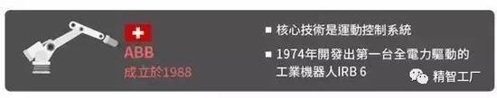 在世界工業(yè)機器人業(yè)界中,以瑞士的ABB、德國的庫卡、日本的發(fā)那科和安川電機*為著名,并稱工業(yè)機器人四大家族。它們在亞洲市場同樣也是舉足輕重,更占據(jù)中國機器人產(chǎn)業(yè)70%以上的市場份額,幾乎壟斷了機器人制造、焊接等高階領域。本篇文章就來揭秘這“四大家族”。