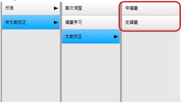 > 使用 “帶負載校正” 方法,則需要進入 “帶偏量” 菜單檢查零點。