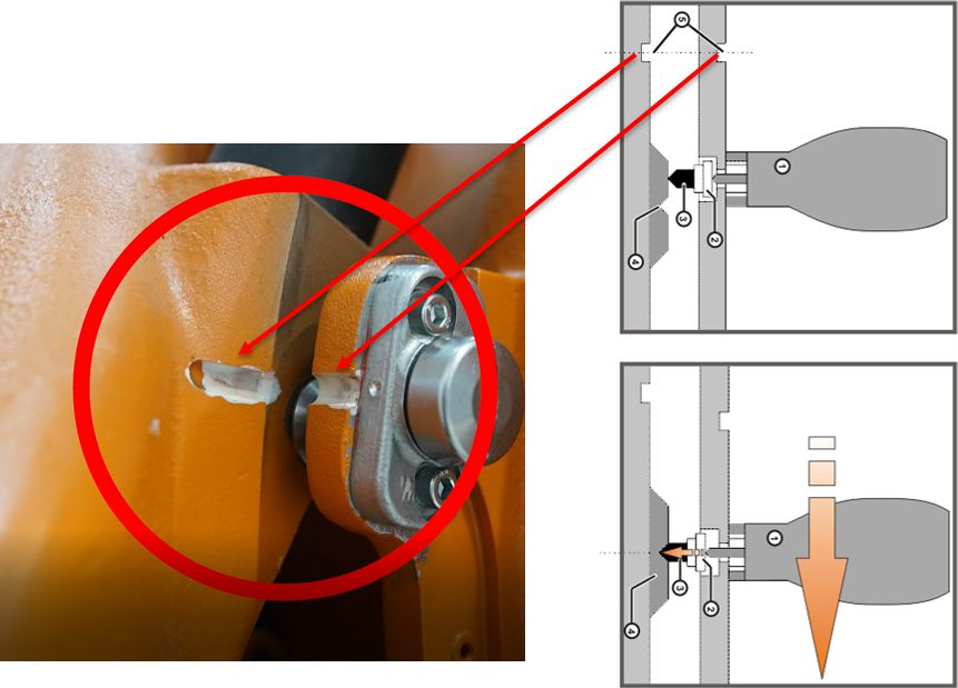 4. 檢查機器人零點校正:首先在檢查之前,所有軸先運行至零點預校正位置(如圖,涂白色油漆的參考位對齊)。